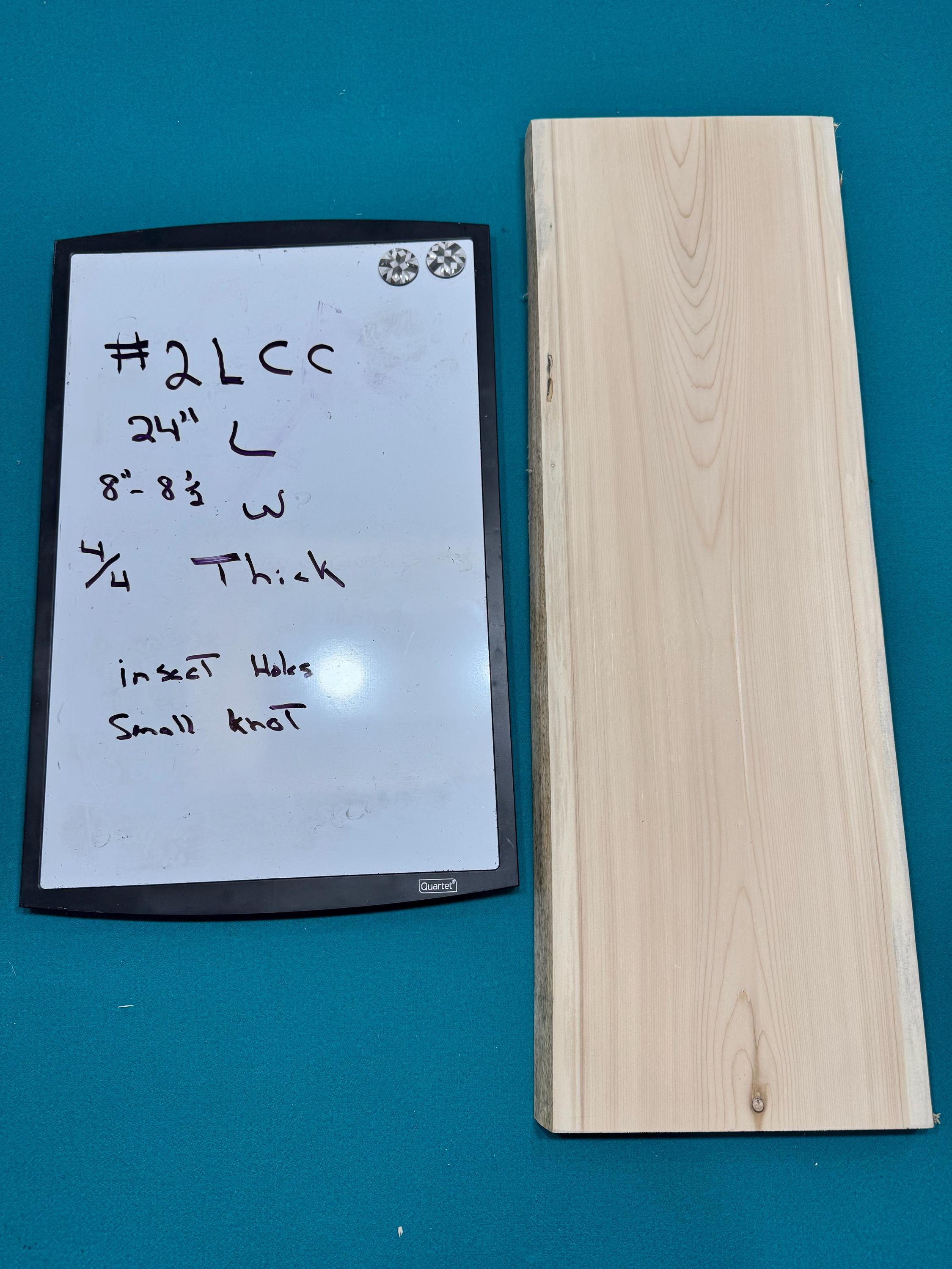 These 24-inch live edge Northern white cedar boards are planned to a smooth 4/4 thickness (approximately 1 inch) and kiln-dried for durability and stability. Graded #2, they feature natural knots and slight imperfections that add rustic character—ideal for woodworking, décor, or custom projects.